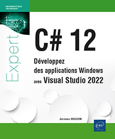 Ce livre sur le développement d’applications Windows avec le langage C# (en version 12) et Visual Studio 2022 est destiné aux développeurs qui débutent avec le framework .NET. Il leur permet d’apprendre les bases du langage C# et introduit des concepts plus avancés leur donnant une vue d’ensemble des possibilités offertes par le langage C#, Visual Studio et le framework .NET en général. L’auteur a choisi une approche pas à pas tout en construisant une application fonctionnelle tout au long de l’ouvrage pour illustrer de manière pratique et cohérente les concepts abordés.